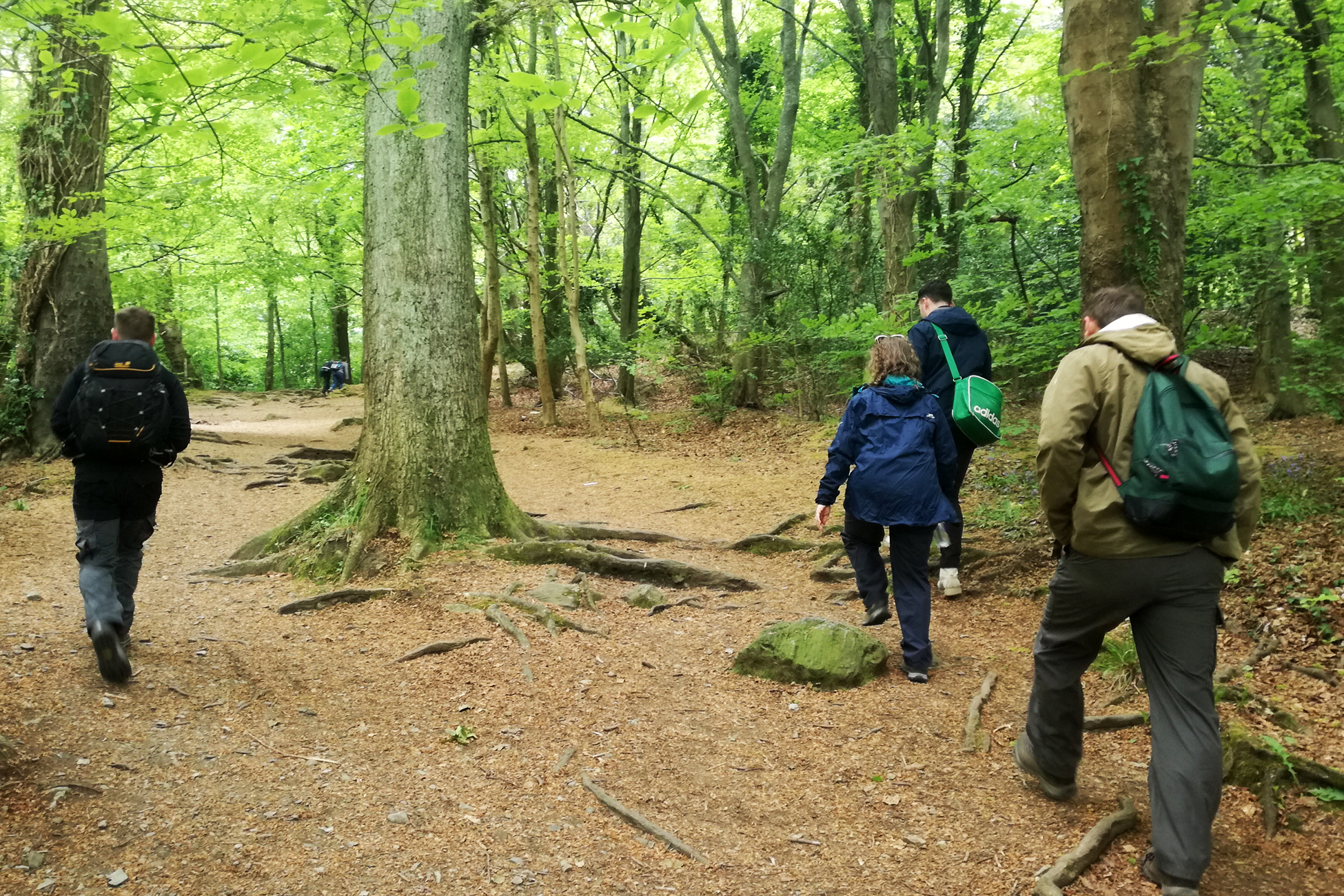 The trail head begins at the free carpark at Dionard Park in the pleasant seaside town of Newcastle (Co Down). It’s 1pm by the time we set off having flown in from London that morning. The weather is looking pretty grey, but it’s not raining yet and with that in mind we’re eager to cover some distance before the weather inevitably worsens. The first part of the trail takes us through a lovely enchanting woodland; the leaves on the trees and surrounding vegetation is a lush green, the smell of damp forest draws us in further, and twisted roots keep us alert as we gradually climb in elevation.